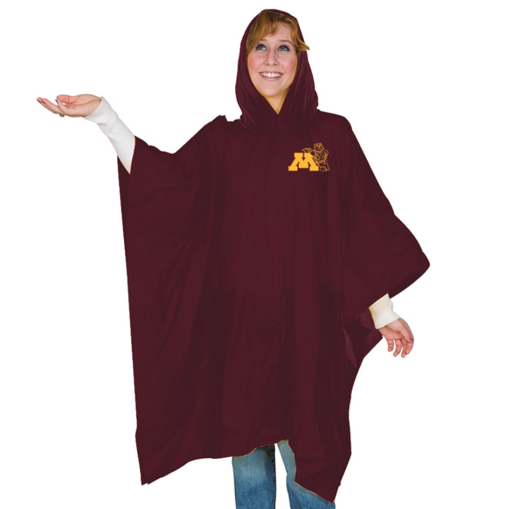 Rainy game day? No problem, Goldy's got you covered in this maroon and gold waterproof poncho.