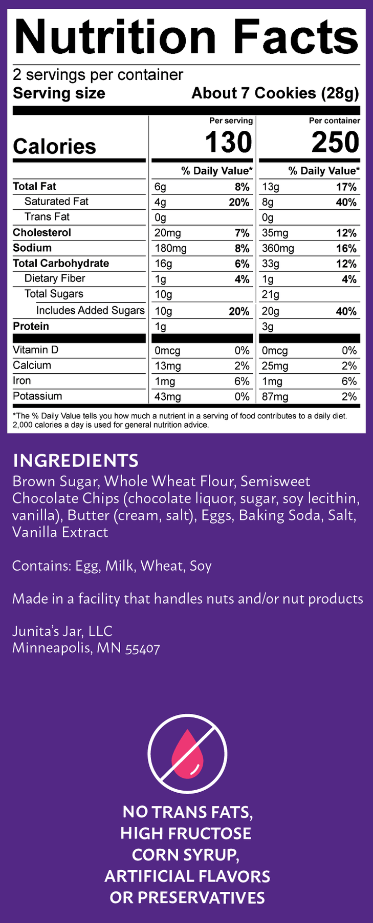 Junita's Jar Chocolate Chip Cookies - 2oz snack pack