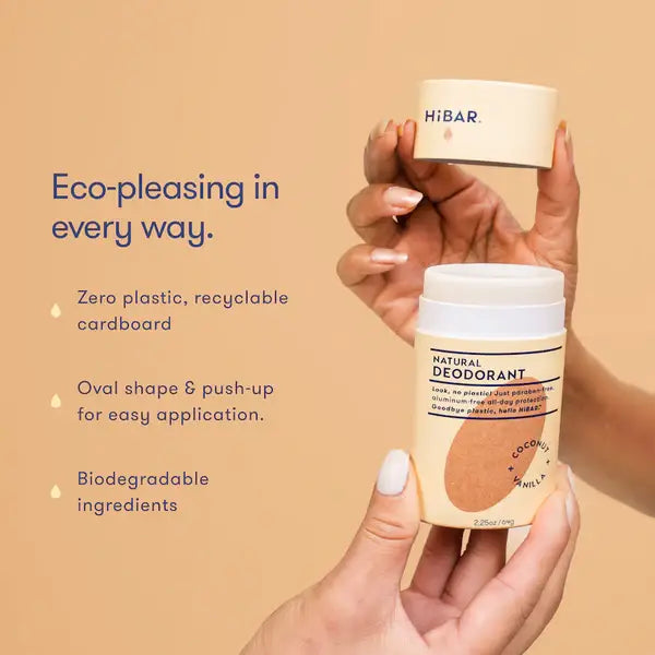 Goodbye plastic, hello HiBAR. Meet HiBAR’s all-natural, aluminum-free, plastic-free deodorant.