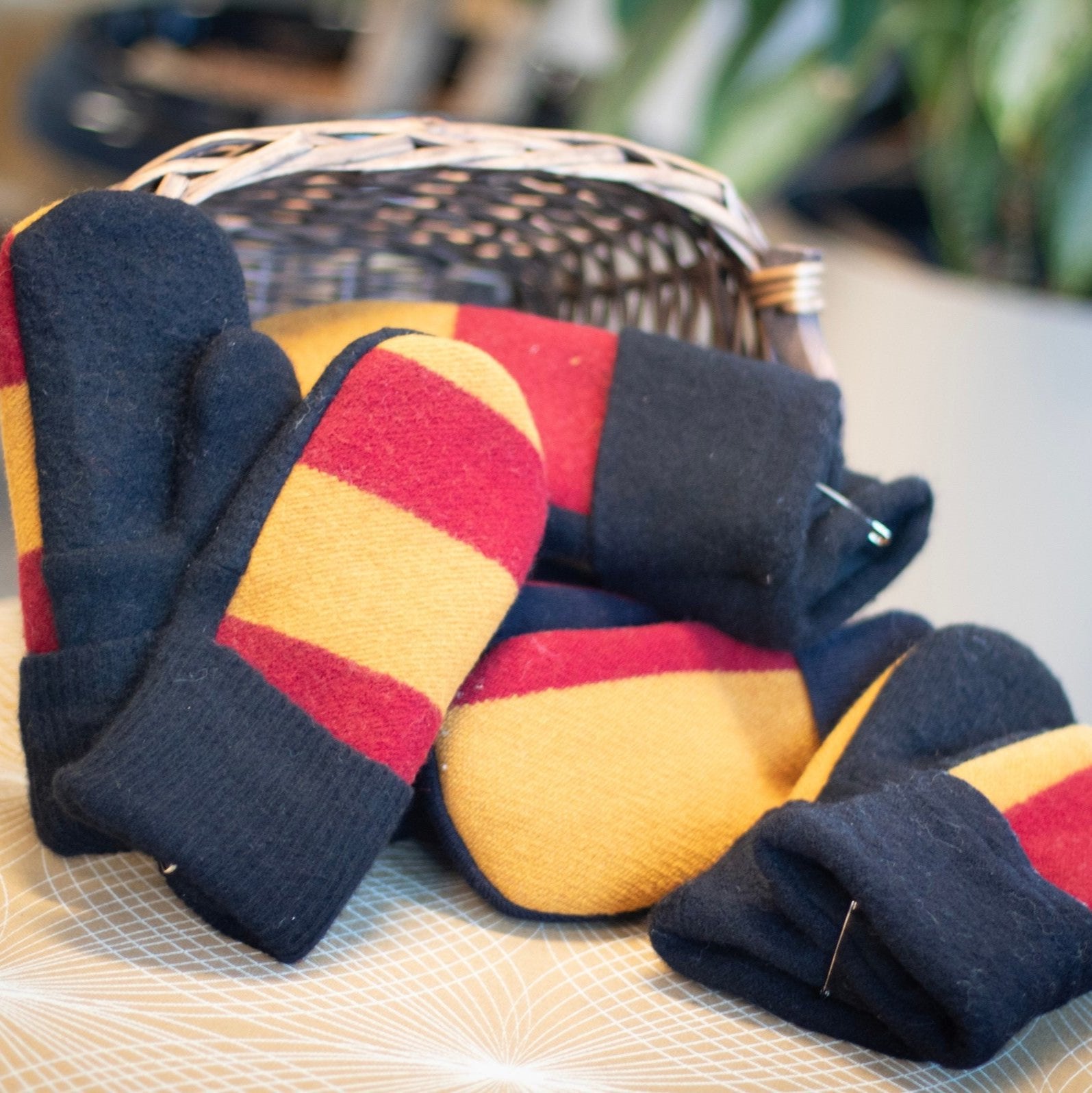 Fiber artist and alumni business owner Nicole Brecht upcycles wool throw remnants from Faribault Mill, along with solid wool from sweaters, to create eco-friendly fashion with function. Each pair of mittens is unique!