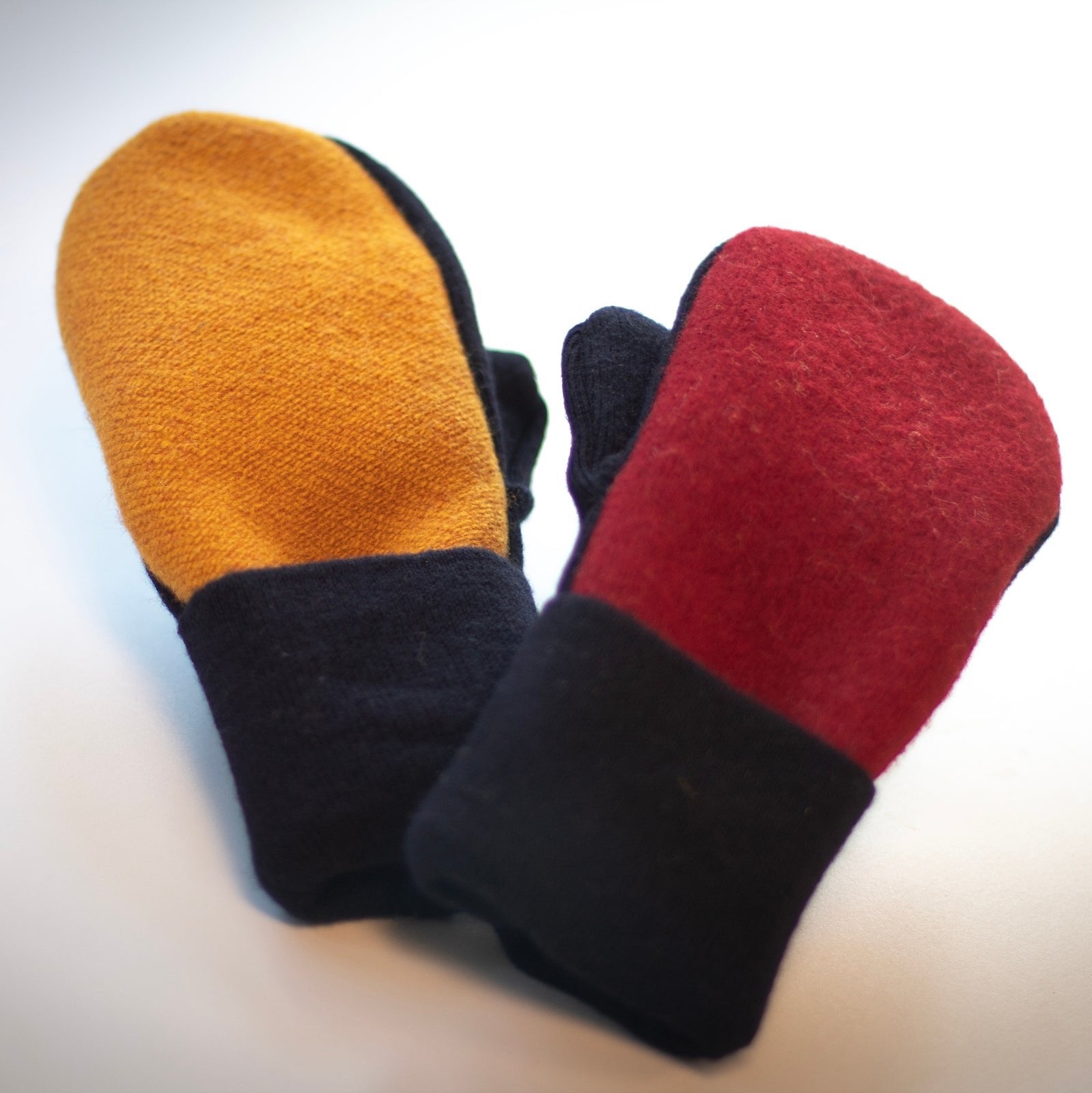 These are cute wool mittens, and I love the upcycle aspect. The cuff does not stay up around the mitten, so I have to adjust it every time I put them on.