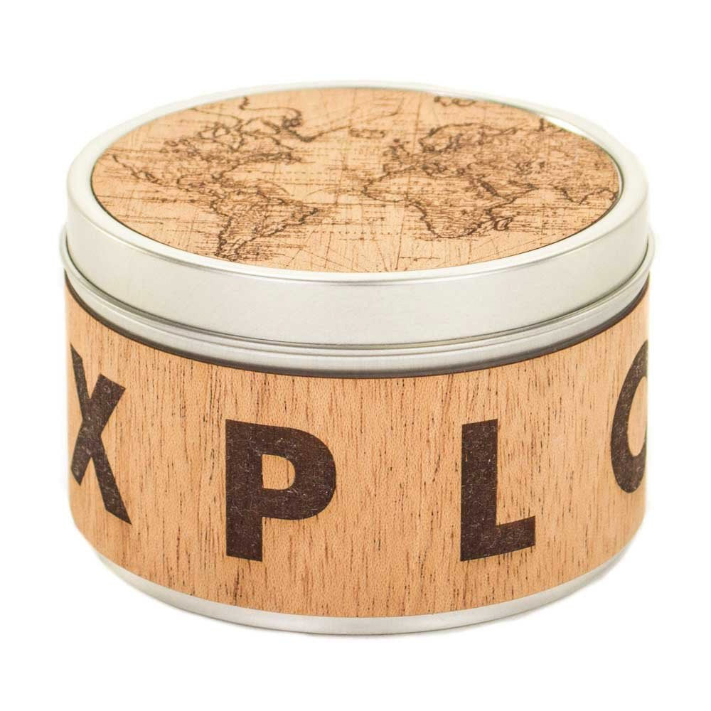 Feed your exploring spirit with this candle. The map of the world on top of the container is engraved in cedar and the word EXPLORE is engraved as a wrap around the sides. Keep those travel dreams burning even if travel is still limited.