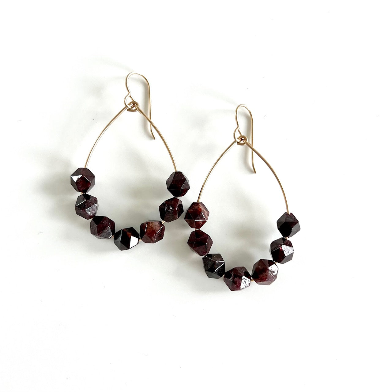 These classic Garnet hoop earrings, compliment the Long Faceted Garnet Necklace