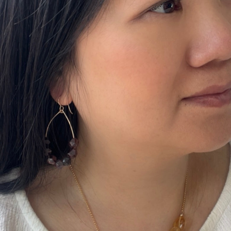 Materials: natural Garnet semi-precious gemstone, 14k gold-fill (see description below)