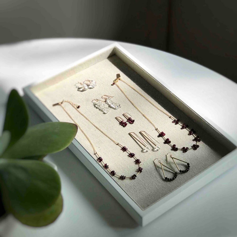 Materials: natural garnet stone, 14k gold-fill (see description below)