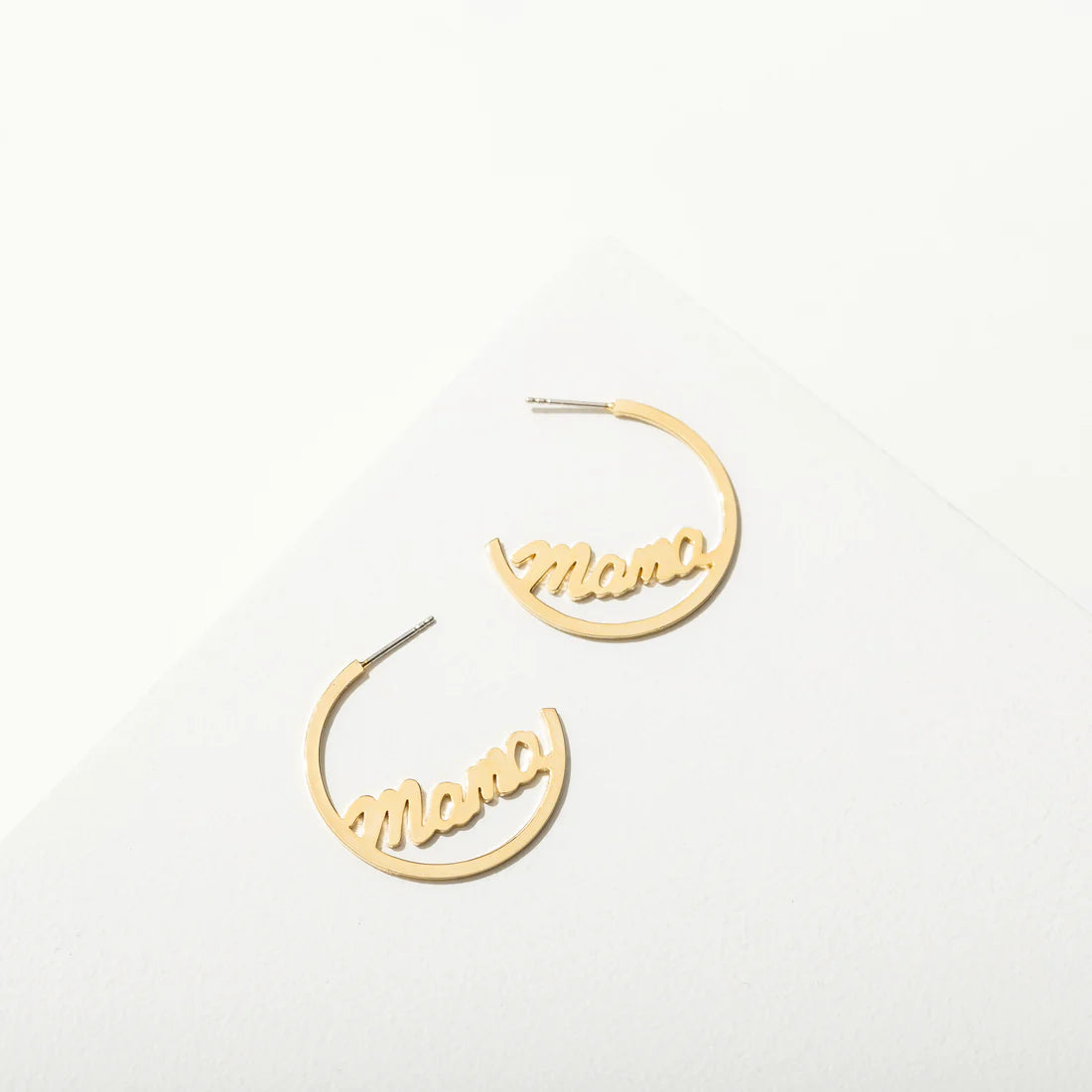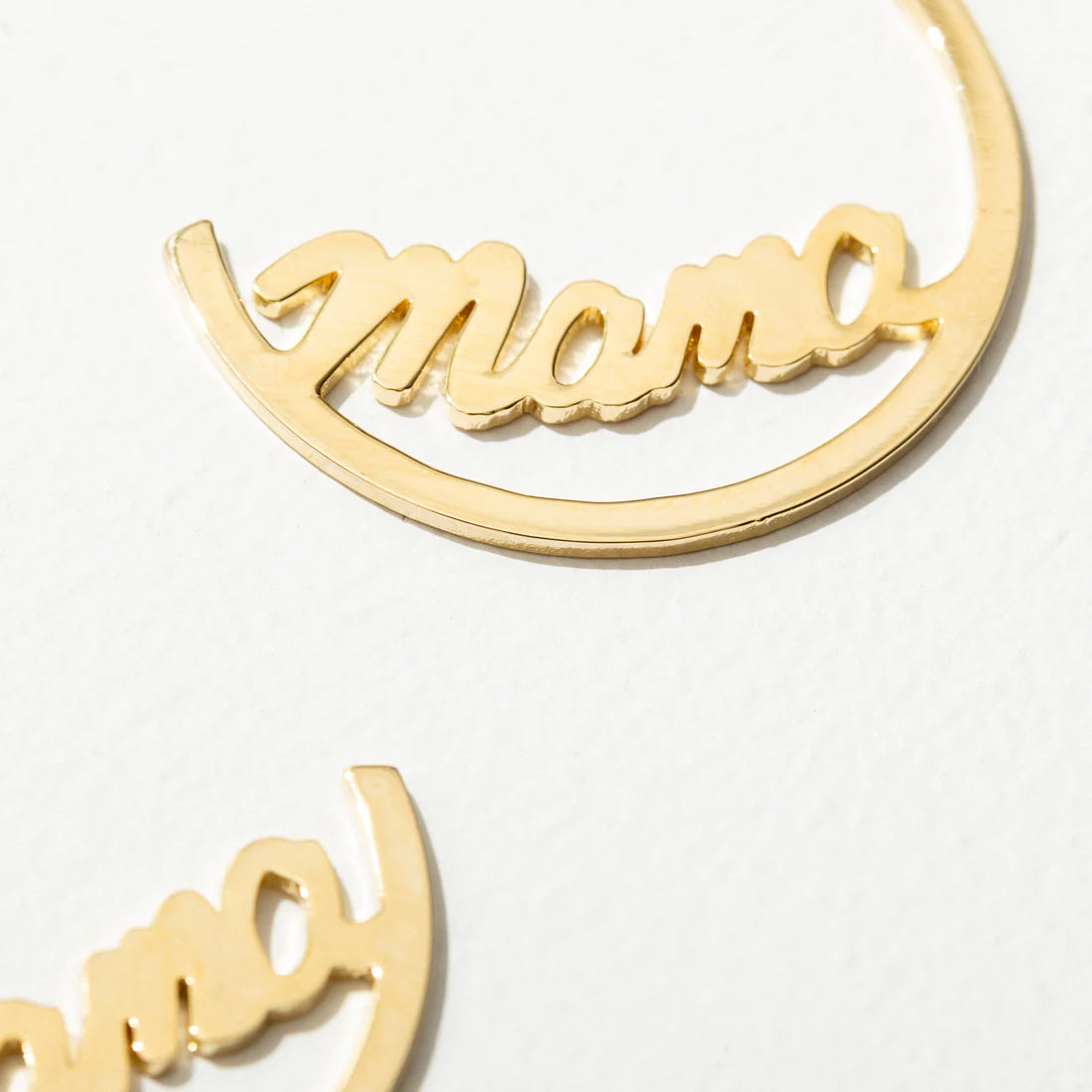 There's no occasion these Mama Hoops won't be the star of the show. Sport your mama title proudly in these custom laser-cut gold plated babes - an everyday hoop that goes fucking hard. A 100% original design, these hoops feature the handwritten script of our very own boss babe, Larissa. Complete with sterling silver posts that are nickel-free and naturally hypoallergenic, these lightweight statement hoops measure 1.5 inches in length and width.