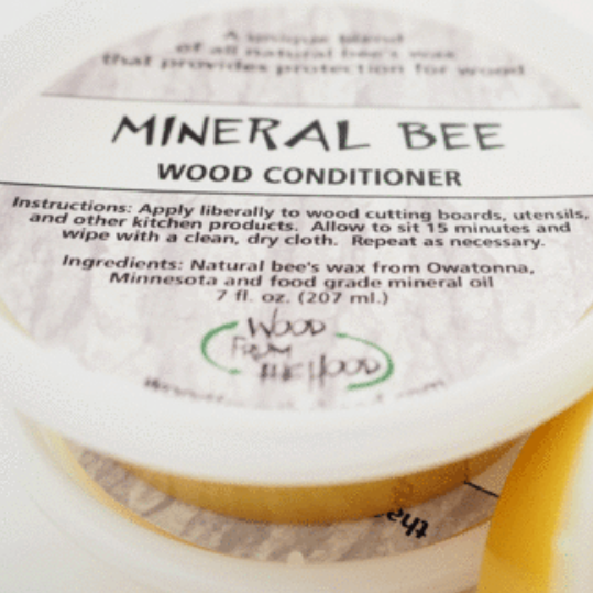 Wood From the Hood's own wood conditioner, made of food grade mineral oil and natural bee’s wax. Gives an all natural finish that is safe for all cutting boards. 7 oz.