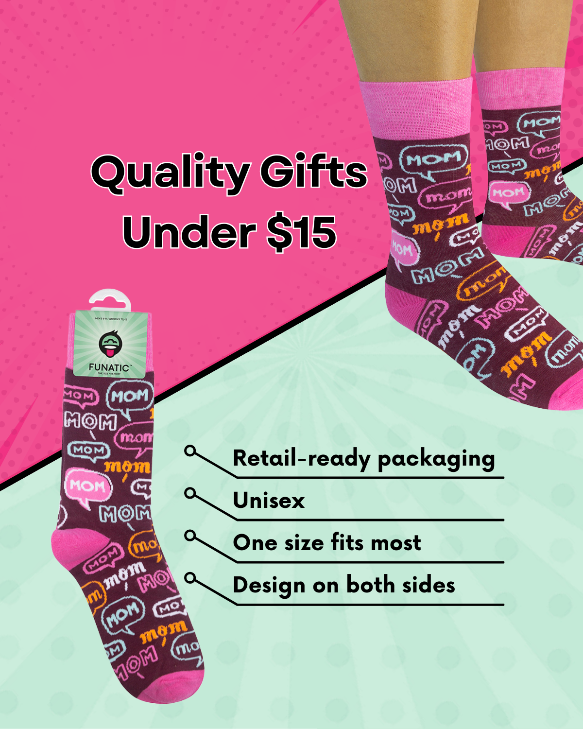 These socks capture the daily soundtrack of motherhood: a constant chorus of “Mom! Mom! Mom!” shouted from every room, usually when you're in the bathroom or hiding with snacks.